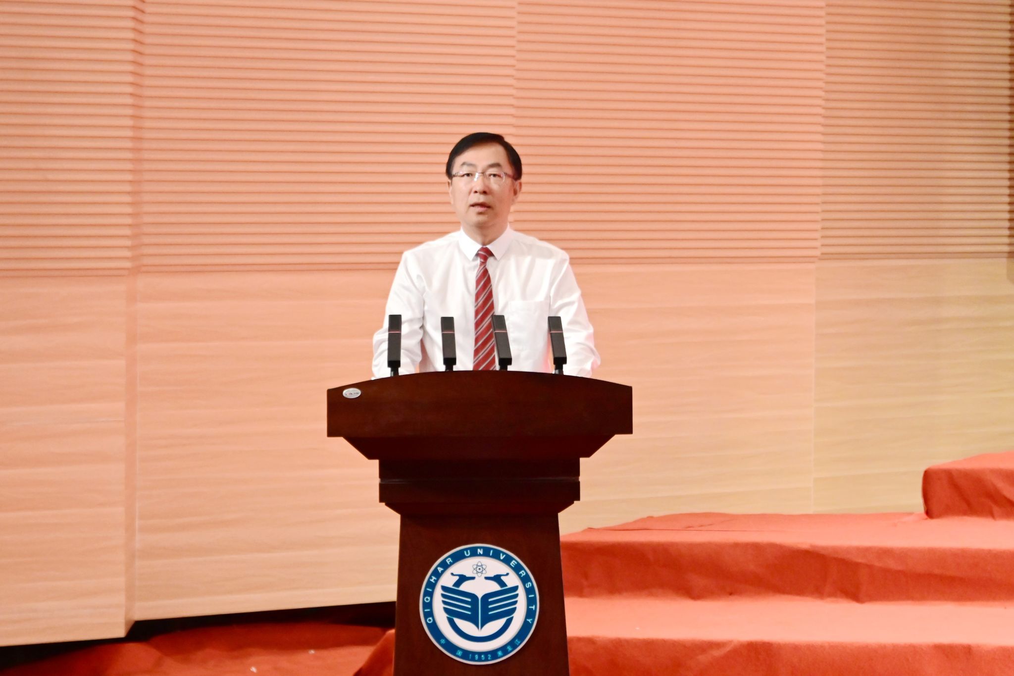 教师代表赵明教授在发言中分享了在齐大从教二十余载的丰硕成果与深刻感悟,表示将继续用实干诠释“捧着一颗心来,不带半根草去”的教育情怀,用奋斗书写“强国有我、兴校有我”的时代答卷,把齐大建设成更有温度、更有高度、更有贡献力的大学!
