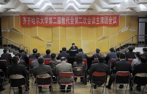4月12日下午14:20,校二届二次教代会主席团会议在学校音乐厅一楼排练厅召开。校工会主席李敏义主持会议,二届二次教代会主席团全体成员参加了会议。