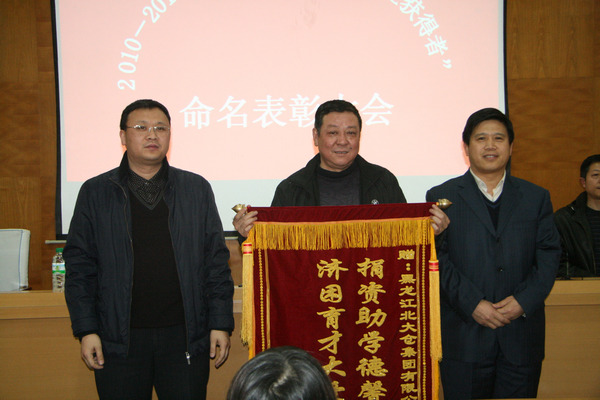 会上,副校长郑喜群、团市委副书记张兴永代表获得奖学金的学生向北大仓集团赠送了锦旗。beats3652010-2011学年度“北大仓奖学金”获得者受到表彰和奖励。
