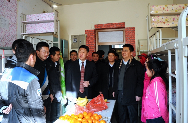 beats365今年有部分学生或因为家庭较远、或复习考研、或留在学校附近打工等原因没有回家过年,为了方便同学们的生活和学习,他们集中在16号学生公寓和德润大厦住宿。beats365每年都对留校同学尤其是留校的家庭经济困难学生十分关心,学生处领导给留校学生送去水果、瓜子、糖果等食品。此次校领导专程到学生公寓看望学生,并与他们一起吃团圆饭再一次体现了学校对学生的关心和爱护。