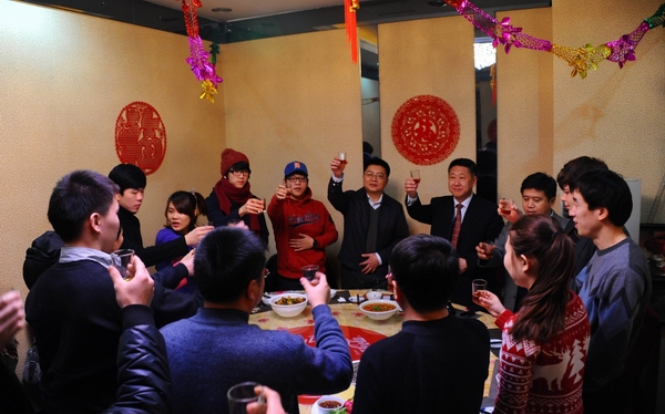 春节来临,留校学生的生活始终牵挂着学校领导的心。1月22日除夕下午,伴随着迎接新年的鞭炮声,从哈尔滨特意返校的校党委书记李海红、校长马立群在副校长郑喜群,校长助理、党校办主任尹鸥,学生处处长黄伟中,研究生学院党委书记王中双,研究生处处长沙伟、国际交流学院院长胥军等相关职能部门领导的陪同下来到学生公寓,亲切看望春节留校学生。并在培训中心餐厅设宴招待留校学生,共吃团圆饭,为他们送去了新春祝福和学校关怀。