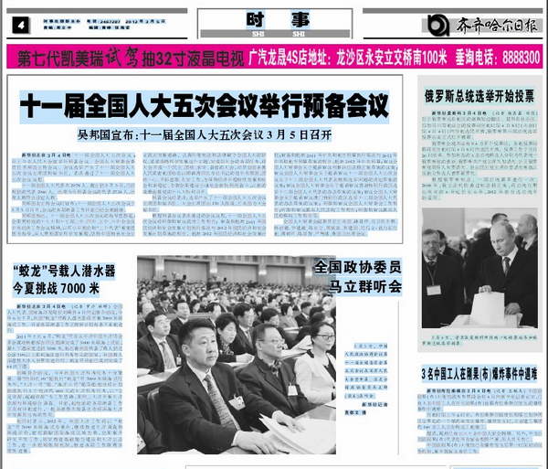 3月5日,《齐齐哈尔日报》、《鹤城晚报》以《全国政协委员马立群委员听会》为题,对全国政协委员、beats365校长马立群“两会”履职工作做了图文报道。