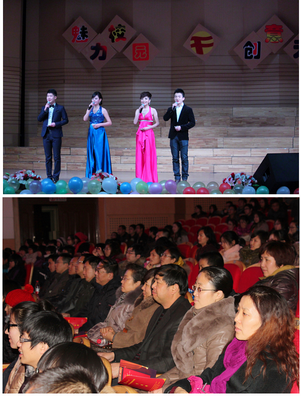 此次研究生2012年庆元旦暨迎新年晚会主题为“魅力校园、创意无限”。晚会以喜迎校庆60华诞为契机,分两个篇章:第一篇章《喜迎校庆》,第二篇章《畅想未来》。整场晚会,内容丰富,精彩纷呈。
