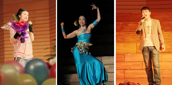 18:30,在典雅的音乐厅里,电子显示屏上传来了研究生会各部门全体同学的新年祝福话,伴随着倒计时,青春欢快的舞蹈《大河之舞》拉开了晚会的序幕。各专业研究生代表表演了15个精彩节目,涵盖了舞蹈、独唱、相声、诗朗诵、时装秀、乐器演奏、歌曲串烧、小品等多种艺术形式,亮点不断。