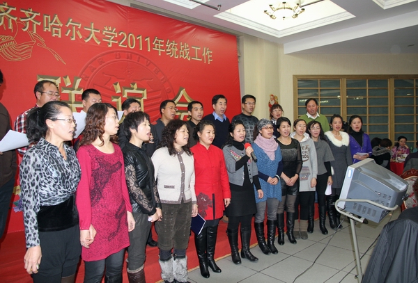联谊会上,统一战线成员们欢聚一堂,放声高歌,以民盟齐大委员会大合唱《祝福祖国》拉开了文艺表演的序幕,相继表演了10余个精彩的文艺节目,用欢歌和笑语迎接新的一年用歌声表达了统战和谐之谊以及携手创造多党合作事业光辉未来的奋进之情。最后,全体与会人员合唱《难忘今宵》,圆满结束了此次统战联谊活动。