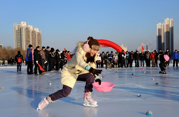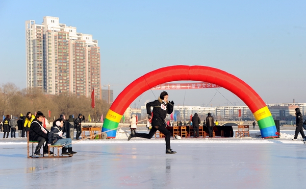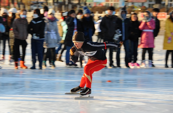 本次冰上运动会执行国家体育总局审定的最新速度滑冰、短道速滑竞赛规则,设置了“男子500米、女子500米速滑”竞赛项目,设置了“一条龙100米”、“纤夫拉爬犁50米”、“定时快捡小布球20个”等游戏项目,吸引了众多同学的热情参与,充分体现了冰上运动会的群体性。