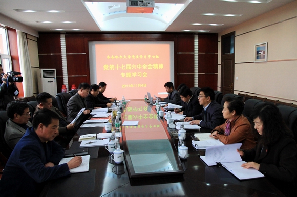 11月4日下午,校党委学习中心组在机关办公楼504会议室,召开集体学习会,深入学习党的十七届六中全会和省委十届十八次全会精神。校党委学习中心组全体成员参加了会议,学习会由校党委书记李海红主持。
