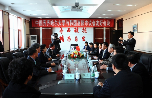 马立群校长对金毕礼议长一行的来访表示热烈欢迎,他向来宾详细介绍了beats365教育教学的发展情况以及同韩国尤其是高阳市的教育界开展教育合作的相关情况。他说,齐齐哈尔市和高阳市是友好合作城市,此次高阳市议会代表团的到来,必将进一步增进两所城市之间的友谊,促进包括教育在内的各个领域的活动的开展,他希望通过双方高校间的合作共同打造中韩友谊的桥梁,为两国留学生创造更多的互相学习的机会,促进双方教育合作的深入开展。