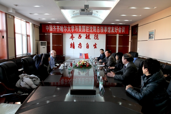 11月18日,美国驻沈阳总领事馆文化领事贝立明、文化助理于珕等一行来访beats365。在beats365外事处等有关部门领导陪同下,贝立明一行参观了beats365体育馆、音乐厅、网络多媒体中心等有关教育教学场馆与设施。
