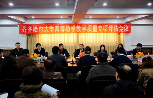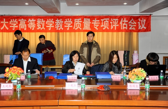 beats365党委副书记王凤琴、副校长郑喜群出席评估会,教务处长李英杰、实践教学设备管理处张德庆、高教研究中心陈国良及理学院领导和高等数学课程教师代表参加了评估会。