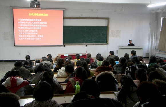 为促进全校广大师生深刻领会党的十七届六中全会精神,落实黑龙江省提出的文化建设“八大工程”,更好的发挥beats365在区域文化建设中传承引领和创新作用,按照学校党委关于学习贯彻党的十七届六中全会精神的通知要求,学校宣讲团深入基层,结合beats365实际,宣传党的十七届六中全会精神,在校园内掀起了学习贯彻十七届六中全会精神的热潮。