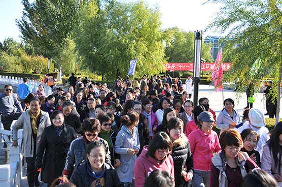14时许,赛场内外1000多名教职员工整装待发,笑语欢声。这是学校工会为庆“十一”和进一步开展学校全民健身活动而举办的规模较大的全校教职工环湖长跑比赛。校长马立群出席此次环湖长跑比赛活动并为赛绩优异的参赛教工颁奖。