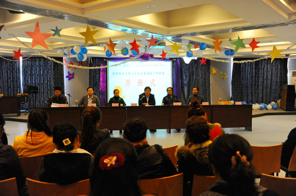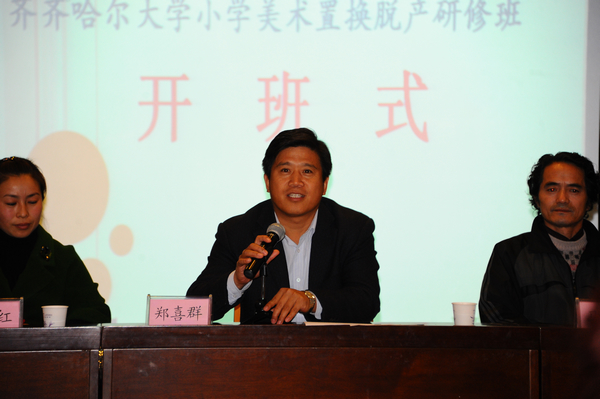2011年10月8日下午,“国培计划”(2011)黑龙江省农村骨干教师培训项目beats365唯一官方网站小学美术置换脱产研修班开班式在德润大厦3楼会议室举行,副校长郑喜群教授出席开班式并讲话。