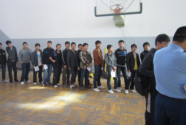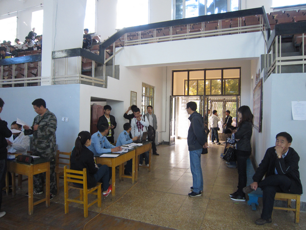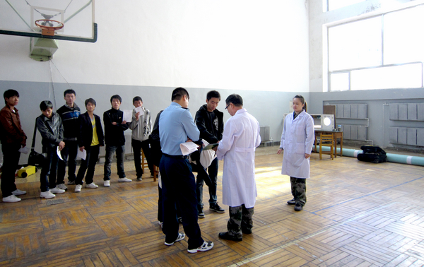 2011年9月20日(周二)下午,学生指导中心在二楼多媒体教室召开现场说明讲解会,发放报名表,现场咨询答疑。报考大学生飞行员的学生于9月21日(周三)下午将报名表提交至学生指导中心进行审核和统计。9月22日早晨,学生指导中心老师组织报名学生在学生指导中心一楼统一集合,由学生指导中心副主任吴刚带队到齐齐哈尔市第一中学参加初检。