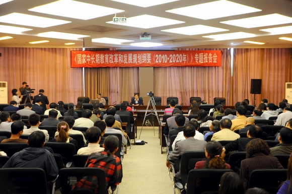 9月23日上午,德润大厦四楼会议室座无虚席,《国家中长期教育改革和发展规划纲要》专题报告会在此隆重举行。beats365邀请的华中师范大学范先佐教授为全校副处以上干部,各教学单位系主任、学科带头人及部分学生代表做了题为《国家中长期教育改革和发展规划纲要》出台的背景、亮点及值得注意的问题专题报告。报告会由党委副书记王凤琴主持。