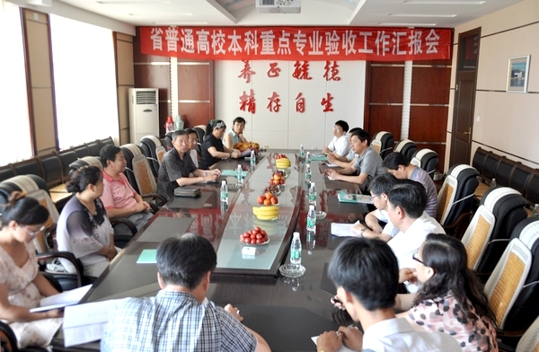 副校长郑喜群代表学校作了省级重点专业建设工作汇报。他从重点专业建设的指导思想、基本原则、重点专业建设与管理、主要措施、取得的主要成绩、建设经费投入、存在的主要问题及今后努力方向等6个方面对beats365省级重点专业建设的总体情况进行了全面报告。