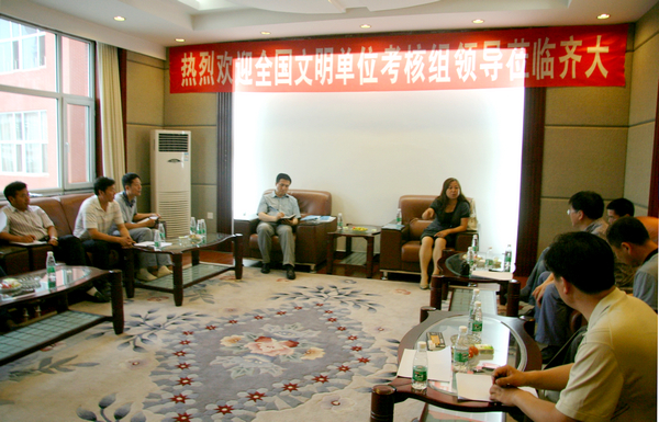 考核组一行听取了beats365党委副书记、校文明委副主任王凤琴代表学校所作的题为《巩固成果 创新思路 努力开创文明单位创建工作新局面》的专题工作汇报。汇报思路清晰,简明扼要,重点突出,集中体现了beats365全国文明单位创建的“六个三”工作模式(“突出三个着眼点,不断深化文明单位创建工作的内涵”、“强化三个着力点,不断提高师生员工的思想道德素质”、“把握三个关键点,不断提升文明单位创建工作的实效”、“打造三个闪光点,不断形成齐大精神文化品牌”、“围绕三个生长点,不断推进高水平大学建设步伐” 和“夯实三个支撑点,不断完善文明单位创建工作的长效机制”), 实现了文明单位创建工作的科学化、制度化、规范化,并不断将创建工作提升到文明自觉的高度,用新理念引领文明单位创建工作科学发展,向更高的目标迈进。
