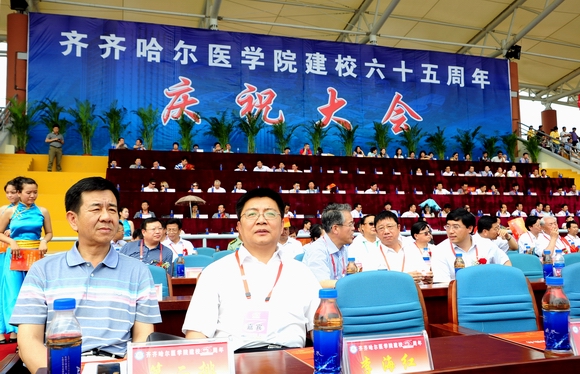 7月15日上午,齐齐哈尔医学院建校65周年庆典活动在医学院体育场隆重举行。beats365党委书记李海红、校长马立群应邀出席庆祝大会并在主席台就座,代表齐大师生对齐齐哈尔医学院表示诚挚的祝贺和美好的祝愿。
