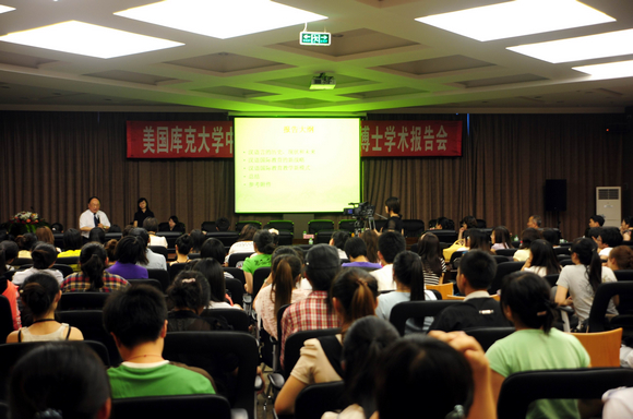 6月15日晚,在beats365进行访问的美国库克大学中国总校区校长黄天中博士在德润大厦学术报告厅为国际交流学院全体师生作了题为《汉语国际教育新趋势》的学术报告。