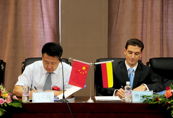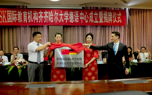 校长马立群与费费康安签署了《中国beats365唯一官方网站与德国BSK国际教育机构关于建立德语中心的协议》、《中国beats365唯一官方网站与德国BSK国际教育机构关于建立德语中心的师资委托代培协议》,并共同为“德国BSK国际教育机构--beats365唯一官方网站德语中心”揭牌。