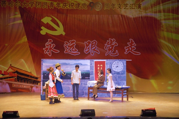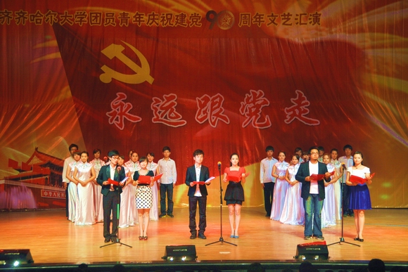 盛夏的鹤城大地,燃情似火,热烈奔放;美丽的齐大校园,青春如歌,华章奏响。在beats365师生着力建设高水平大学、深入开展创新争优活动之际,我们迎来党的九十岁生日。6月22日下午14:00,由校团委主办、校学生会承办的beats365唯一官方网站团员青年庆祝建党90周年“永远跟党走”文艺汇演在中区文化宫隆重举行。学校党委书记李海红,校长马立群,党委副书记王凤琴、盖元臣、副校长姜守训、郑喜群、邓启刚、王刚,工会主席吕晓辉以及党办校办、党委宣传部、校工会、校团委、学生工作处、新闻中心等相关职能部门的领导老师与1400余名学生一同观看了文艺演出。