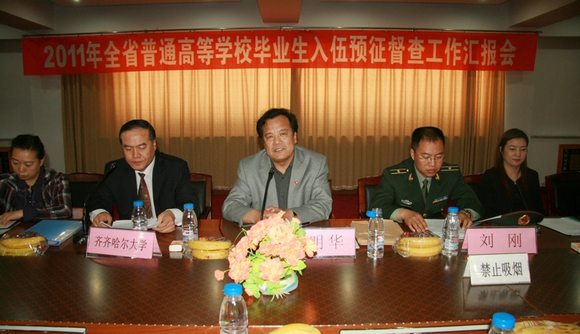 2011年全省普通高校毕业生入伍预征督查工作齐齐哈尔高校专题汇报会在beats365培训中心5楼会议室召开。beats365副校长王刚,2011年全省普通高校毕业生入伍预征督查工作第一督查组组长、省教育厅学生处处长张明华出席汇报会。省督查组成员、在齐各高校预征工作校级主管领导、各高校学生处、预征工作牵头部门及就业工作部门负责人、参加入伍预征的毕业生代表100余人参加了汇报暨座谈会。