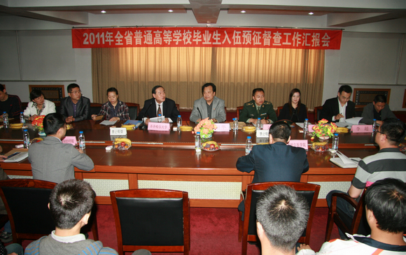 2011年全省普通高校毕业生入伍预征督查工作第一督查组同参加会议的各高校入伍预征的毕业生代表进行了座谈,倾听了他们关于入伍参军的想法、今后的打算,以及对预征兵工作、毕业生就业工作等方面的意见和建议。