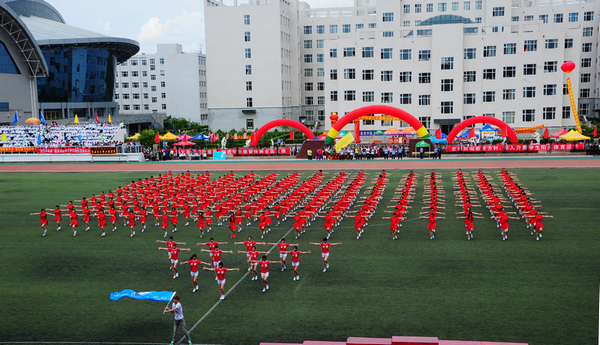 经济与管理学院、教育与传媒学院、文学与历史文化学院、外国语学院等学院学生大型团体操表演分获一、二、三等奖。