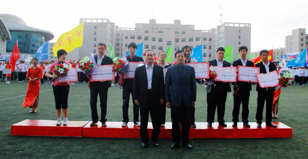 27日下午16:00,运动会闭幕式在西区体育场隆重举行。校领导李海红、马立群、王凤琴、张学军、姜守训、郑喜群、邓启刚、王刚等出席闭幕式,并分别为获奖单位和个人颁奖,向他们致以热烈地祝贺!