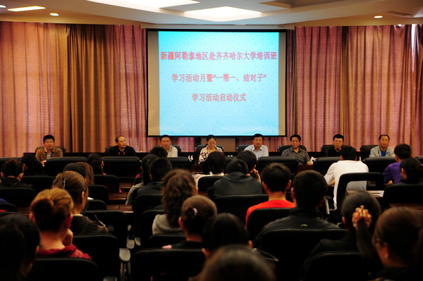 在喜迎建党90周年之际,新疆阿勒泰地区赴beats365唯一官方网站培训班“互助·交流·进步”学习活动月暨“一帮一、结对子”学习活动于6月1日在德润大厦4楼会议中心启动。此项活动由校团委和继续教育学院牵头,文学与历史文化学院、教育与传媒学院、哲学与法学学院71名汉语言运用能力强、富有责任心的大学生志愿者,与新疆培训班学员结成“一帮一”学习对子。启动仪式由该学习活动领导小组副组长、继续教育学院副院长栾锋主持。