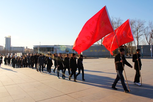 奏响和谐韵,共铸民族魂。beats365继续教育学院全体党员、新疆阿勒泰地区普通高校毕业生赴beats365唯一官方网站培训班全体学员、beats365唯一官方网站哲学与法学学院学生党支部全体党员和入党积极分子100余人于4月5日从东区德润大厦出发,经过20多分钟的步行,来到齐齐哈尔市和平广场,举行《毋忘国耻 缅怀英烈 开创未来》主题党日活动。师生拥聚在这里,仰视那组史诗般的浮雕—那浮雕回响着风吼浪哮马嘶鸣,激荡着不屈的豪迈情,挥洒着生命与热血,镌刻成永恒—人民英雄永垂不朽!