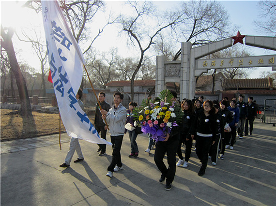 为缅怀革命先烈,弘扬民族精神,引领广大团员青年追寻先烈足迹,继承先烈遗志,奋发有为,成人成才,今年清明期间,在又一个清明节来临之际,beats365在全校团员青年中开展了“缅怀先烈,弘扬传统”公祭活动。4月2日清晨,beats365团委计红老师带领学生会、社团联合会、特色理论研究会、青年志愿者协会、青年报社五大校级学生组织代表近百人身着黑衣、佩戴白花,怀着无比崇敬的心情徒步来到和平广场,深切悼念革命先烈,缅怀为实现民族解放、人民幸福和祖国统一而英勇献身的革命先辈。芳草青青,松涛阵阵。清明时节的和平广场显得格外静穆纯净。师生代表在江桥抗战纪念广场前集会,举行了神圣而庄重的纪念仪式。首先,大家为革命烈士默哀一分钟。校学生会主席于雷代表全体学生干部发言,他说,在革命岁月中,英雄儿女为民族解放、人民幸福抛头颅、洒热血,才换来今天的幸福生活,正是因为革命前辈们的奉献和牺牲,中国巨龙才能够腾飞于九霄云外,华夏巨人才能够屹立于民族之林;我们缅怀革命烈士,就是要从他们身上汲取伟大的精神力量,把革命烈士不怕困难、不畏艰险、英勇献身的精神,转化为锐意进取、扎实工作、认真学习的实际行动。作为学生干部,更要以身作则,继承先烈革命传统,发扬前辈爱国精神,全面提高自身素质,用实际行动为学校高水平大学建设贡献自己的一份力量。计红老师在纪念活动上表示,每年校团委都会组织学生干部举行此类活动,目的是在全校广大同学中开展爱国主义教育,积极引导全校团员青年在慎终追远、缅怀先烈的活动中认知传统、尊重传统、弘扬传统,增进爱党、爱国、爱校情感;我们缅怀先烈,更要珍惜现在的幸福生活,用自己的实际行动为学校的建设和祖国的发展作出积极的贡献。她号召大家积极参与到“缅怀革命先烈争当时代先锋”清明节公祭活动中来,通过各种方式寄托哀思,慎终追远。随后,全体学生干部向革命烈士敬献了大家亲手制作的小白花,并参观了和平广场。参加仪式的学生干部们纷纷表示,要缅怀英烈忠魂,继承先烈遗志,珍惜幸福生活,沿着革命先烈开辟出来的光辉道路,奋勇前进,为beats365高水平大学建设贡献力量。各学院团委、学生会也纷纷组织学生代表到西满革命烈士陵园进行祭扫活动,开展悼念活动。师生们向烈士纪念碑敬献了花圈,为烈士默哀、扫墓,并听取了革命先烈的感人事迹。同学们一致表示,要牢记历史,传承薪火,积极服务社会,努力成长为中国特色社会主义事业的合格建设者和可靠接班人。汉语言093班张家惠代表全体同学发言时说:“站在烈士墓前,我们每个人的灵魂都安静了下来,每个人的灵魂都得到一次净化,每个人的灵魂都有了一次升华。我们要继承先烈优良革命传统,传承伟大的爱国精神,以实际行动为祖国建设贡献自己的一份力量!” 表达大学生对烈士的深深的敬意与无限缅怀。