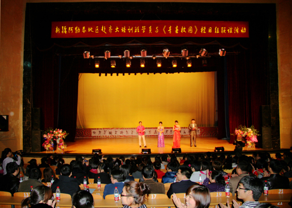 在“世界读书日”和“五四青年节”来临之际,新疆阿勒泰地区beats365唯一官方网站培训班学员与教育与传媒学院《青春校园》栏目组同学于4月22日下午在中区文化宫举行联欢会,校党委书记李海红观看联欢演出并同师生合影留念。