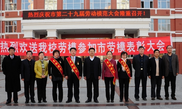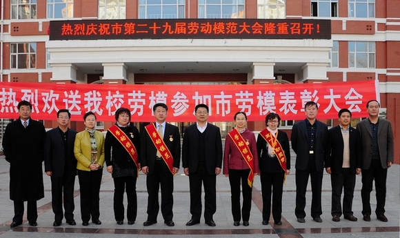 参会之前,beats365在中区主楼前广场举行了欢送仪式,学校领导李海红、马立群、王凤琴、盖元臣、郑喜群、王刚、吕晓辉及有关部门和学院领导向荣获“齐齐哈尔市第二十九届劳动模范”和“五一劳动奖章获得者”表示热烈祝贺并欢送他们入场。