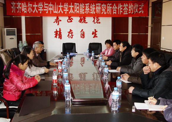 在热烈、友好的气氛中,beats365副校长邓启刚代表学校与中山大学太阳能研究所所长沈辉正式签署了合作意向书。