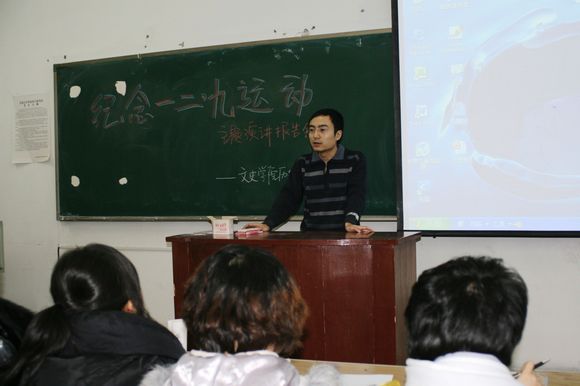 图现历史,激扬斗志。一幅幅图片将同学们带回到那个激情浩荡,热血喷涌,值得铭记的年代。天寒地冻、滴水成冰的天气冻结不了中国青年的爱国情,他们用无比的胆识和勇气揭露事实真相,用文弱的双肩扛起拯救国家的历史责任。一幅幅振奋人心的图片,如一句句发自肺腑的呐喊,感动着现场的每一位同学,唤起了他们深埋心底的爱国情怀。