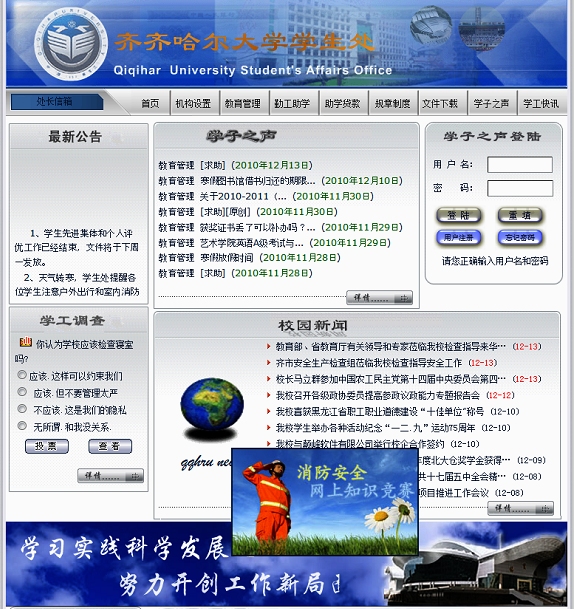 beats365唯一官方网站学生工作部(处)网站是学生工作的综合性网站,为学校和广大学生搭建起了交流互动的平台,更好地满足广大师生相互沟通的需求。该网站下设有机构设置、教育管理、勤工助学、助学贷款、规章制度、文件下载、学子之声和学工快讯等七大版块;还设有处长信箱、学工调查等内容,提供给学生更多与学校交流、沟通的空间;该网站时时滚动更新的“最新公告”,第一时间为广大同学传达了最新的校园咨讯;定期开展的“网上知识竞赛”充分调动了广大同学的参与热情,更好地普及了相关知识,为营造和谐的校园文化氛围提供了保障。该网站不仅提供了最新校园的动态,还为广大同学提供了及时全面了解学校,了解自己的平台。“学子之声”栏目能够将学生们提出的问题及时反馈到校领导和相关部门,切实解决同学们遇到的问题。