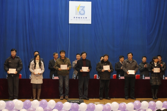 副校长郑喜群宣读了《2010年度在全国、全省大学生学术科技竞赛活动中获奖集体和个人名单》。与会校领导分别为190名年度课外学术竞赛活动学生先进个人和62名优秀指导教师代表颁奖。
