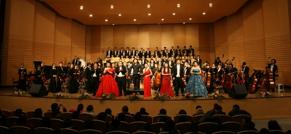 随着演出总指挥、beats365音乐与舞蹈学院院长、国家级著名音乐指挥家孙相根教授刚劲有力的手势,音乐会在宏大的《红旗颂》中拉开了的序幕。
