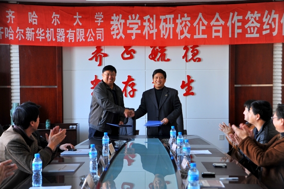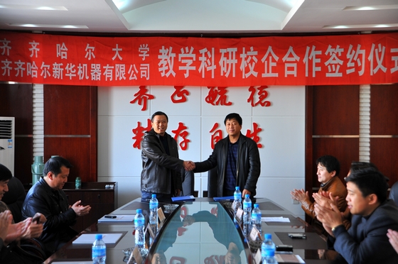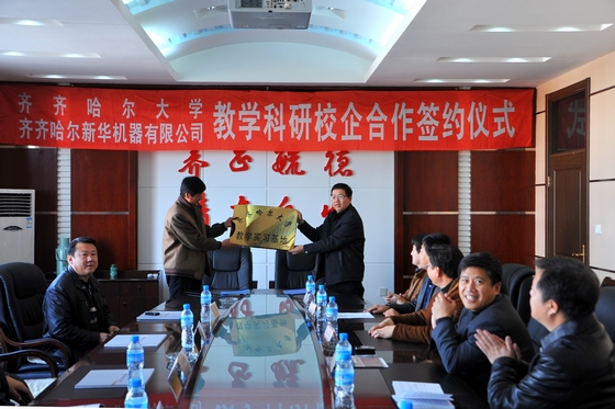 副校长郑喜群说,齐大是在美丽的鹤城土地上发展壮大起来的综合性大学,多年来得到了驻地各界的大力支持。服务地方经济社会发展和齐市人民,是所有齐大人共同的心愿。他表示,齐大将进一步贯彻落实黑龙江省高等教育强省建设规划,加强与企业界的联系与沟通,创新和完善校企共建合作机制,不断拓宽教学科研工作服务地方经济建设的渠道,整合优势资源,提升服务水平,为推动企业与学校的互利双赢和可持续发展做贡献。