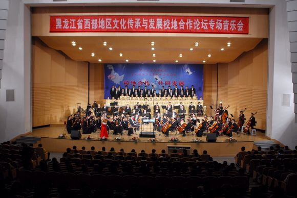 学校交响乐团为来校参加论坛的的省委宣传部、省委高校工委、省教育厅有关领导、齐齐哈尔市、大庆市、黑河市、绥化市、大兴安岭地区等黑龙江省西部地区五地市宣传部领导、十三所高校专家学者代表、企业界代表、新闻媒体记者、beats365师生代表等1200余人再次奏响气势宏大的钢琴协奏曲《黄河》第四乐章、《红旗颂》等经典曲目。这是beats365弘扬高雅艺术、传播先进文化的缩影。