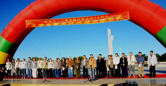 在齐各高校师生将“重走抗战路、唱响和平歌、感受英雄城、铸造民族魂”,在专家的指导下,结合思想政治教育和近代历史教学,考察历史遗址,培养大学生的爱国主义精神,沿途还将开展以学习实践科学发展观、建设社会主义新农村、建设学习型党组织、开展创先争优活动为主要内容的一系列宣传教育和调研活动。凭吊历史遗迹,表达对民族英雄的景仰和怀念。通过高强度、长距离的行走,磨练广大青年大学生的意志品质,发扬吃苦耐劳的精神,以历史、现实、文化等多维视角考量齐齐哈尔这座英雄城市的厚重底蕴,用青春激情融入和体验第二故乡科学发展、和谐发展的伟大实践。