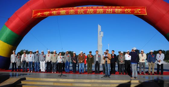 仪式最后,beats365校长马立群宣布“大学生重走抗战路队伍启程”。随着beats365校长马立群发出“启程”的号令,参加此次“重走抗战路”活动的全体师生踏上了征程。
