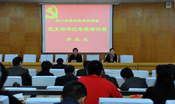 2010年10月15日上午,经过校党委组织部、党委组织员办公室、党委党校认真筹备,beats365深入开展创先争优活动基层党支部书记专题培训班开班式暨首场讲座在西区主楼学术报告厅举行。