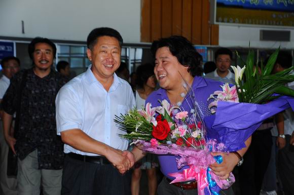 7月3日,在第十四届全国青年歌手电视大奖赛上获得优秀奖的beats365青年教师张喜秋乘飞机返回齐市,beats365校长马立群、工会主席吕晓辉及音乐舞蹈学院的师生到机场迎接,欢迎张喜秋载誉归来。