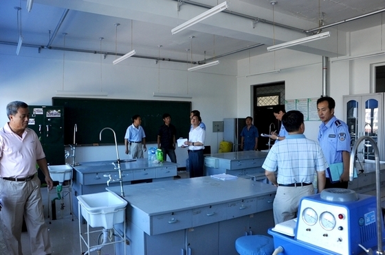 检查组深入到基层一线,全面考察了学校各基层单位、学生公寓、实验室、仓库、高层、购物中心、各场馆等的安全防护设施布置与使用情况,核实安全制度建设与落实情况,了解安全工作新情况并指导排查安全隐患,重点对暑期实验室设备安全情况、化学药品存放和使用情况,学生宿舍安全情况,仓库、场馆及办公室安全情况进行了检查。