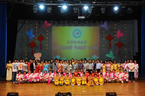 闭幕式结束后,与会领导和现场师生一起观看了精彩的文艺演出。“庆祝建党89周年‘七月放歌’歌舞晚会”在气势恢宏的大型舞蹈《奋斗》中拉开了帷幕,参加演出的节目均由各学院、校大学生艺术团精心选送,是同学们自编自演的原创作品。这些作品巧妙地将校园生活同讴歌改革开放、歌唱伟大祖国相结合,将新一代大学生的成长成才同创建文化校园、构建和谐社会相结合,突出反映了beats365校园文化建设的最新成果,反映了同学们乐观向上、不断进取、勤奋踏实、自信自强的精神面貌。演出结束后,与会领导和嘉宾同参演人员合影留念。