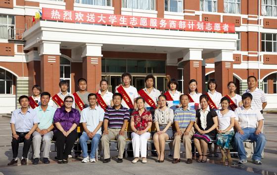 欢送仪式结束后,学校领导、各职能部门领导与2010年国家西部计划大学生志愿者合影留念。