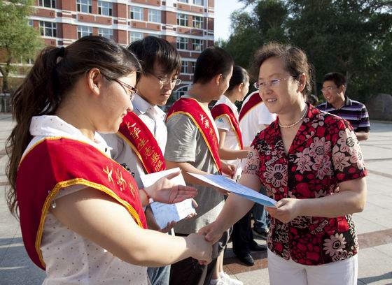 6月28日下午,在大学生志愿者赴基层志愿服务前夕,学校在中区广场举行了隆重的欢送仪式。校党委副书记王凤琴、校团委书记李秀梅、学工处(部)副处长张树启、学生指导中心副主任吴刚、校团委副书记赵振华及学校团委全体老师和志愿者所在学院的团委书记出席欢送仪式,亲切慰问了身披大红授带即将出征的志愿者们。校党委副书记王凤琴、学工处(部)副处长张树启为志愿者颁发了“大学生服务西部计划志愿者”录取通知书和生活补助;学生指导中心副主任吴刚、校团委副书记赵振华为志愿者颁发了纪念品。