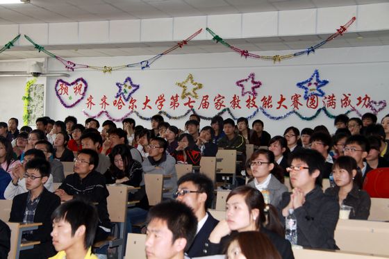 在决赛中,为了公平、公正地评定参赛选手的为师素质、施教水平和从教技能,特聘请了文学与历史文化学院教授于耀洲、外国语学院副院长王晓丽、教务处副处长姜波、实践教学与设备管理处副处长祝文生、学生指导中心副主任董云飞、学生工作处副处长张树启等老师担任了本次大赛决赛的评委。学生工作处学生资助科有关人员以及来自各学院的热心同学近200人现场为参加此次赛事的20名选手加油鼓劲。